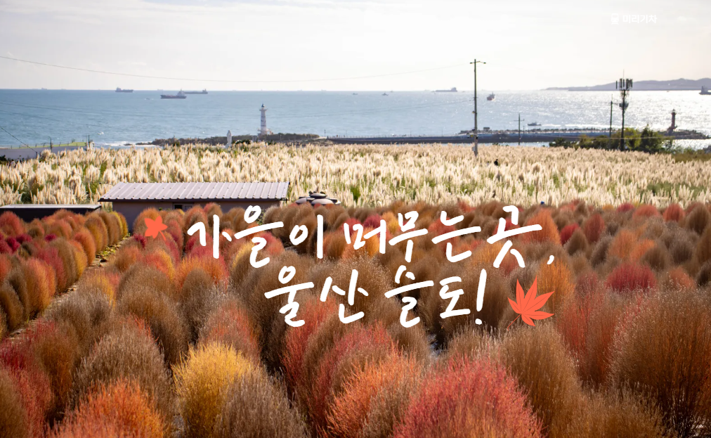 가을에 붉게 물드는 댑싸리(코키아)와 바람결의 팜파스를 만나는 울산 동구 슬도. 위치, 주차, 동선, 촬영팁, 연계코스까지 정확하게 정리했습니다.
